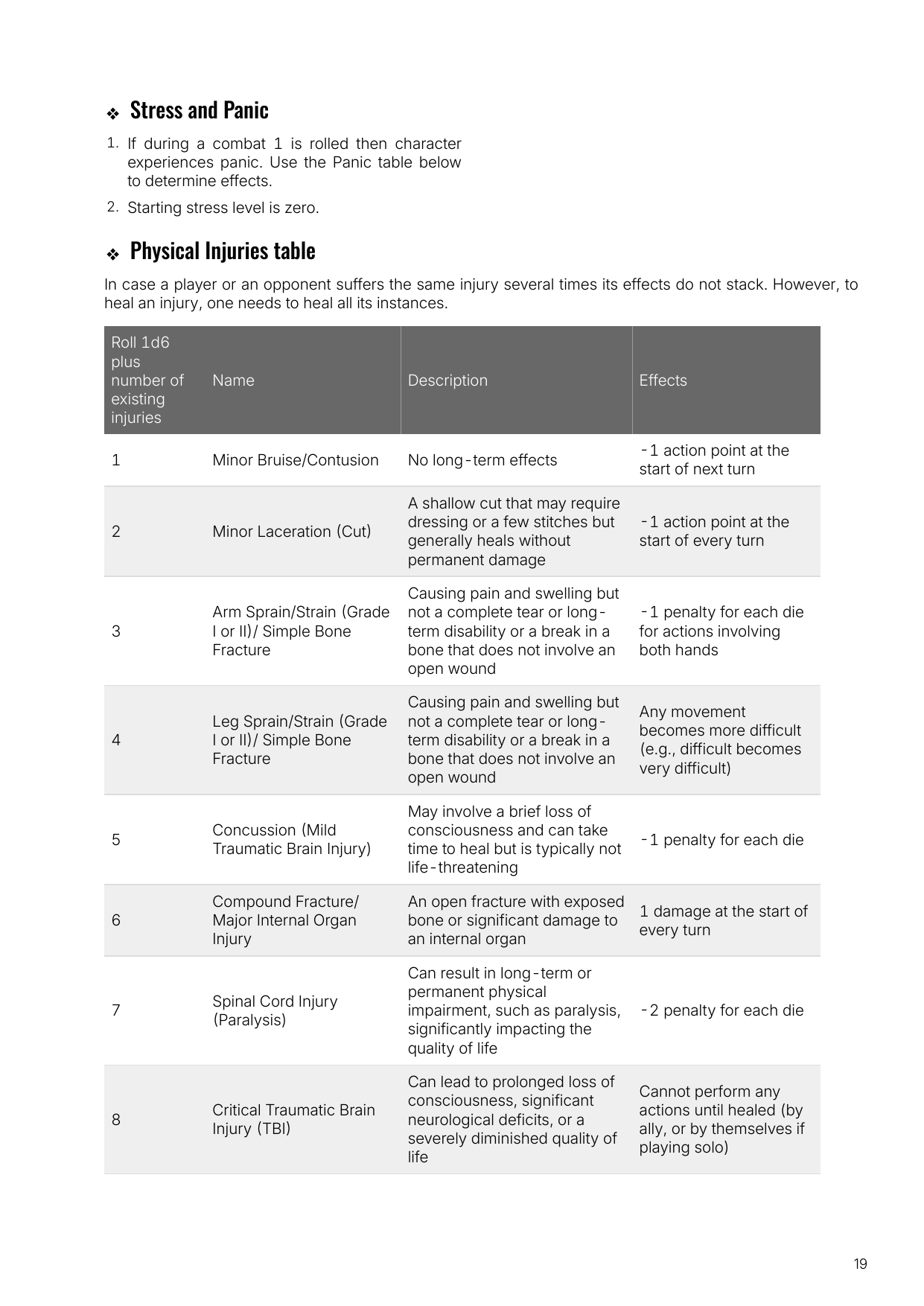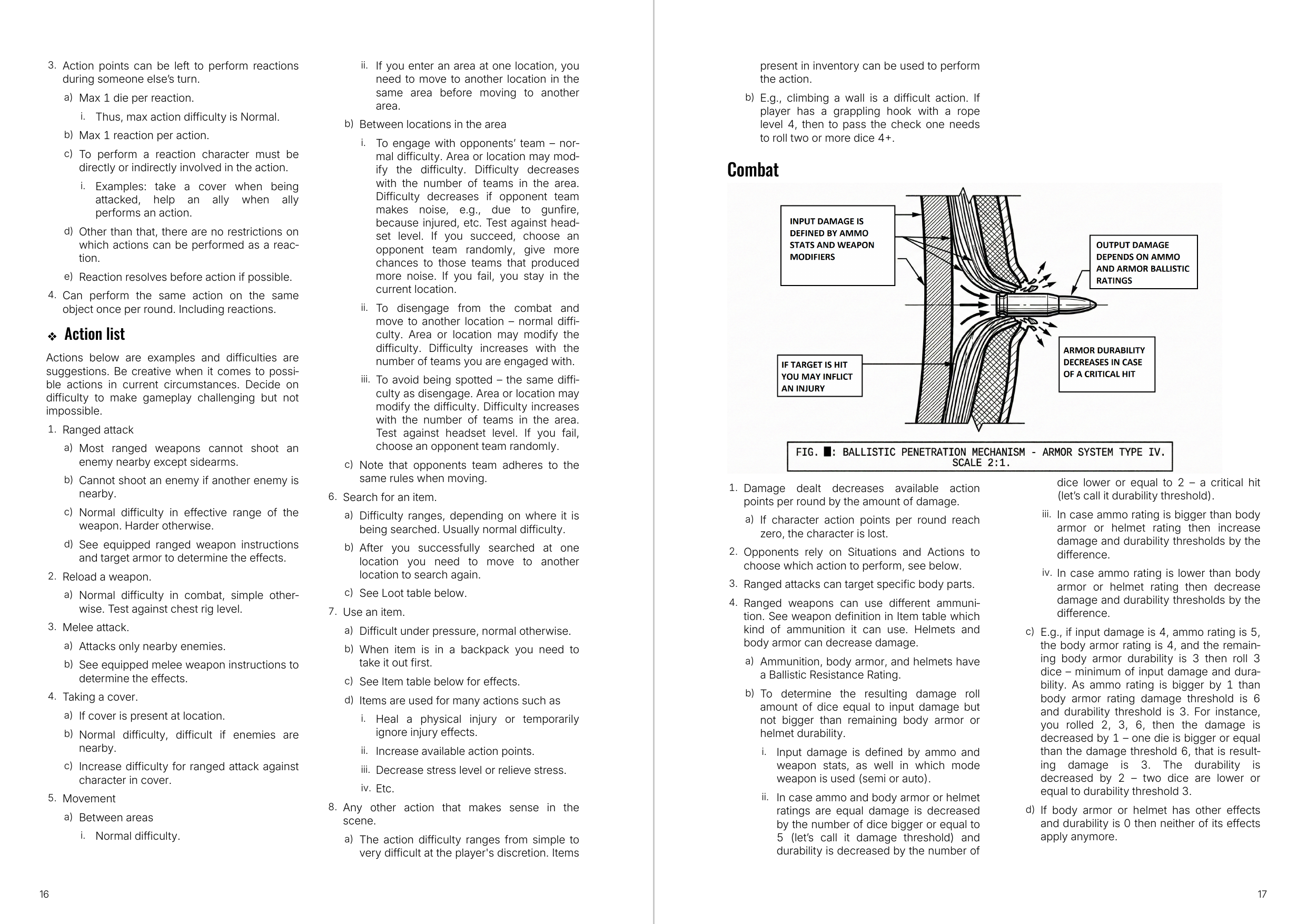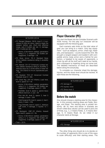 Second, the game brings the well-established extraction shooter genre to the tabletop. It fits naturally with solo play and provides high replayability. The system allows space for roleplaying encounters, selecting appropriate actions, and deciding their difficulty. The rules act as flexible guidelines to keep the game engaging and challenging.