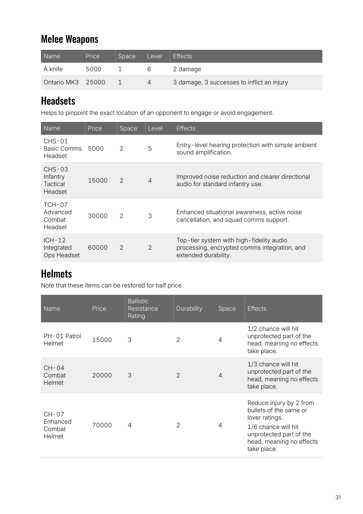 - Character equipment guidelines